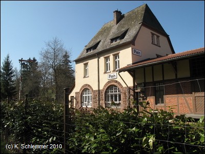 Nächster Halt ist der alte Bahnhof von Platten. Richtung Wittlich ist die Trasse durch Bauarbeiten unterbrochen, eine Umfahrung ist eingerichtet (Stand 2010).
