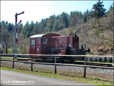 Der Bahnhof Schalkenmehren taucht auf. Auf dem Bahnhofsgelände befinden sich einige Eisenbahnrelikte.