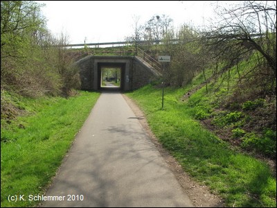 ....dann in einer leichten Kurve unter einer Brücke durch. Vor Mertloch unterquert man eine Straße.