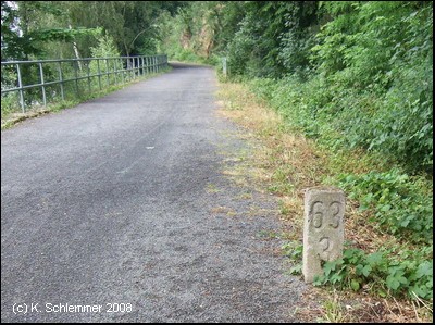Einige Hektometersteine wurden restauriert und erinnern an die Eisenbahn.