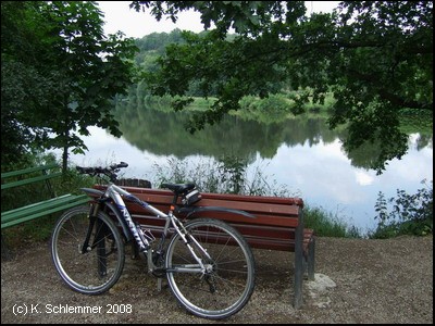 Der Abschnitt bis Grimma ist nicht asphaltiert, der Gewitterregen hat den Radweg in ein Planschbecken verwandelt.