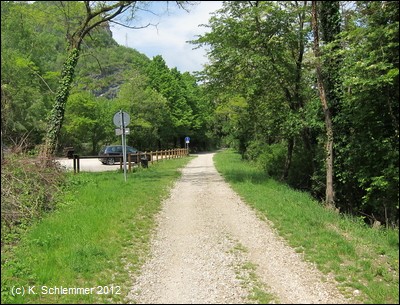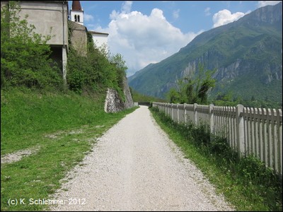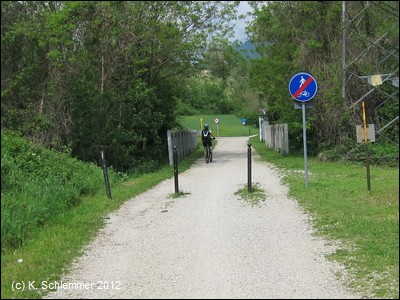 Manche nutzen die Trasse auch als Wanderweg. Vor Seghe di Velo überquert man mehrere kleine Brücken und eine weitere Straßenkreuzung.