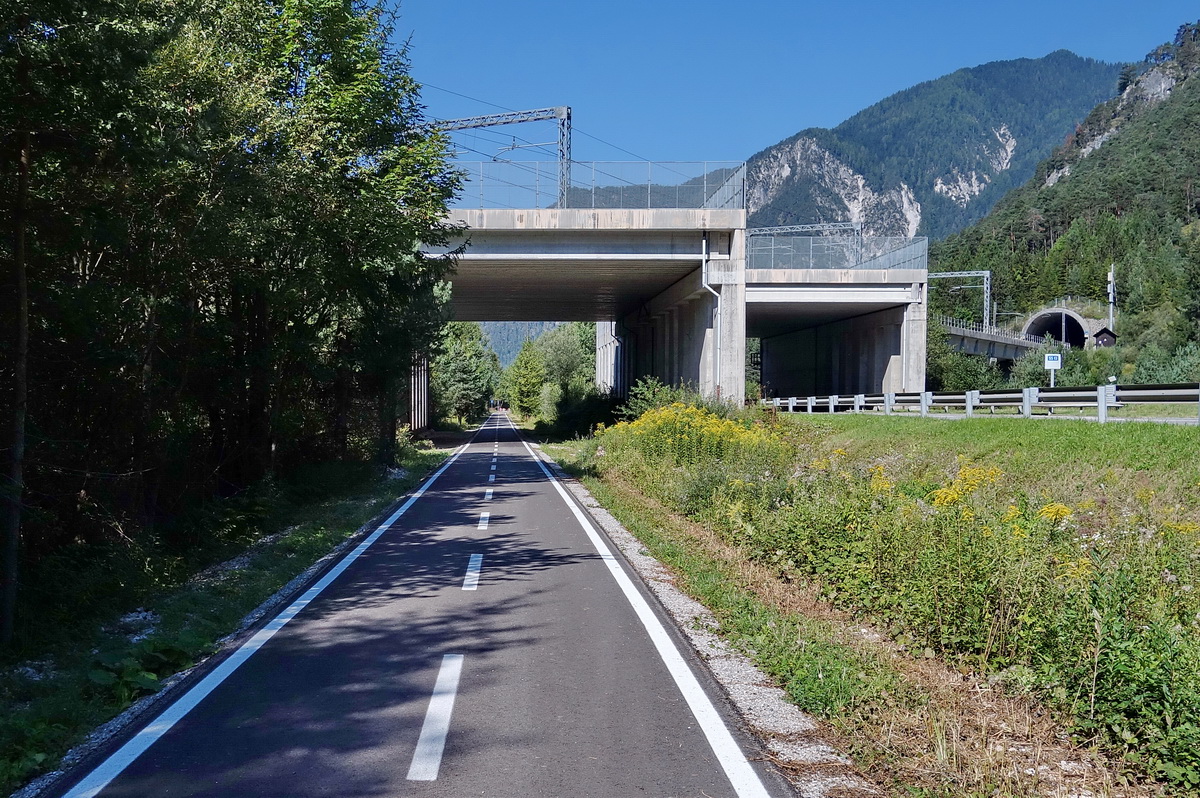 Die Autostrada A23 Alpe-Adria überquert den Radweg. Noch ein Tunnel und die nächsten Ortschaften liegen vor uns.