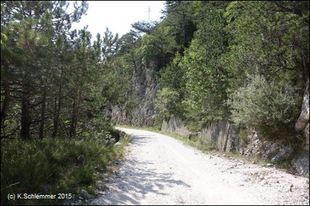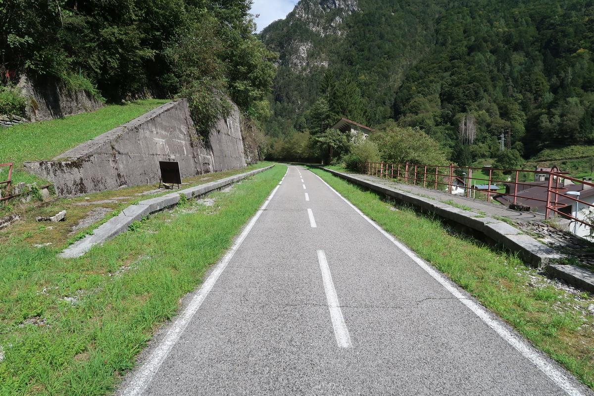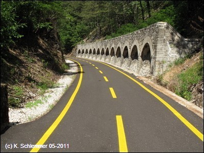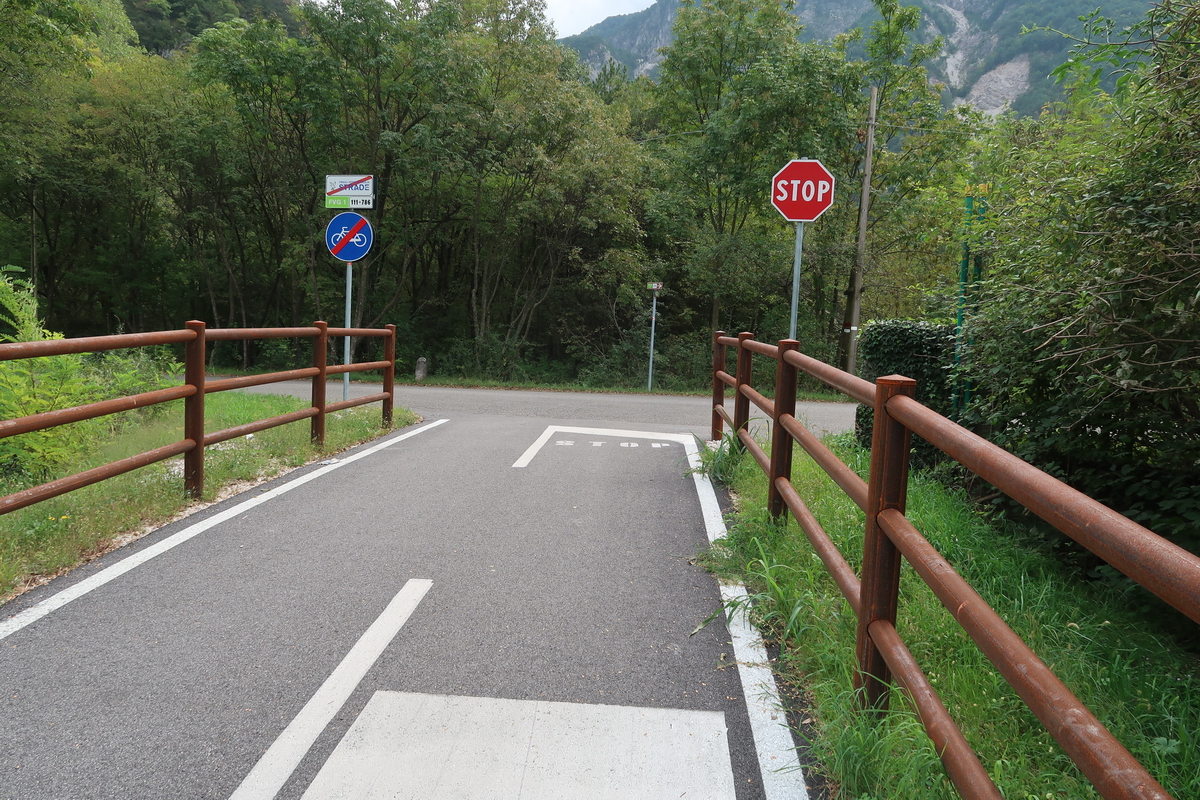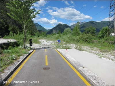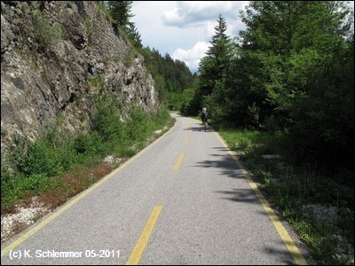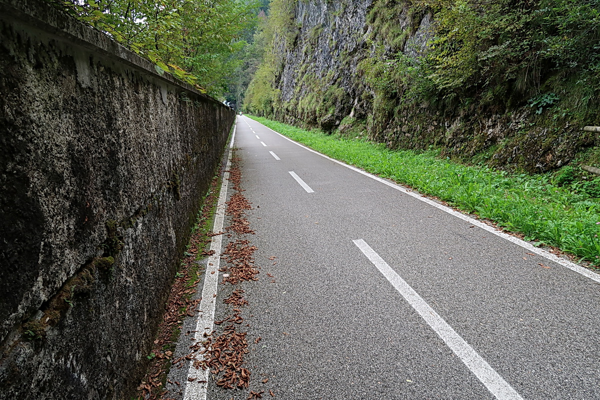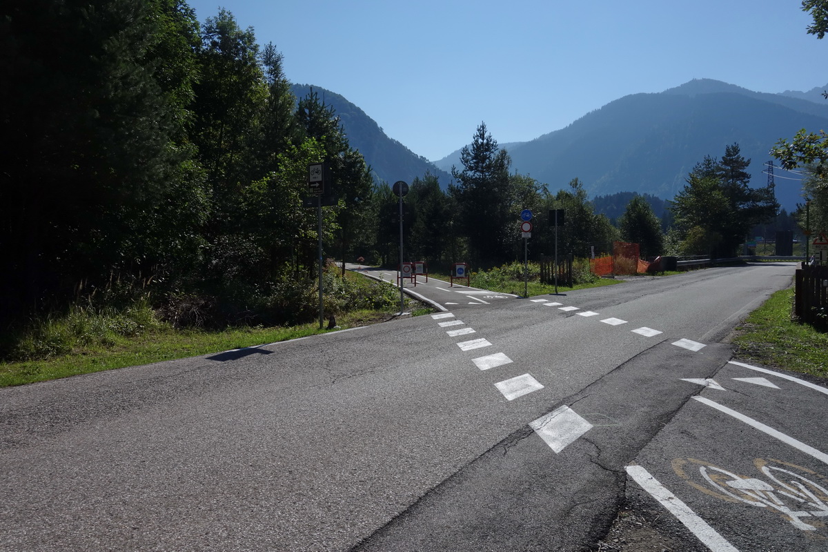 Weiter nach Valbruna, die Strecke ist relativ neu. Der Radweg kreuzt die Straße.