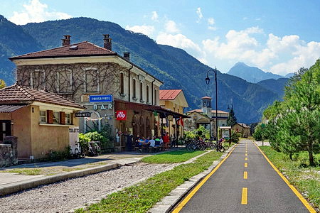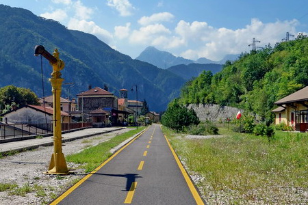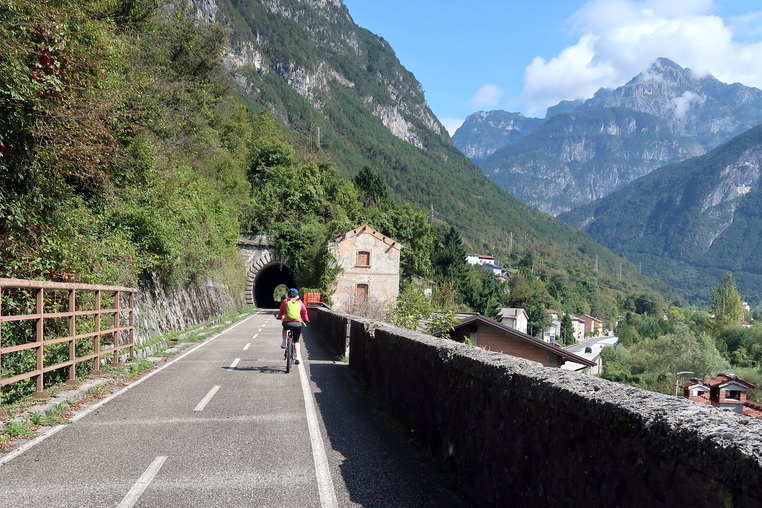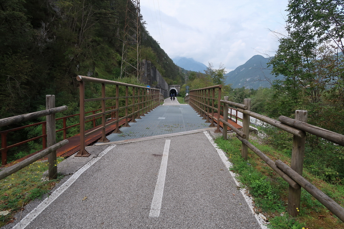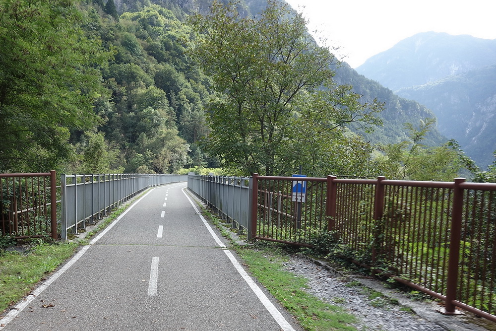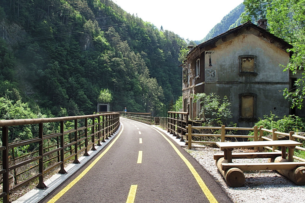 Im Nordosten Italiens, im Dreiländereck zwischen Österreich, Italien und Slowenien, findet man einen der schönsten Bahntrassenradwege Italiens: den Radweg auf der alten "Pontebbana" - Eisenbahnstrecke. Mit Mitteln der EU wurde auf der stillgelegten Bahnstrecke von Tarvisio nach Carnia ein 53 Kilometer langer Radweg angelegt, der am Fella-Fluss entlang (Kanaltal / Valcanale) durch die Berge von Friaul-Julisch Venetien führt. Besonders der Abschnitt zwischen Carnia und Pietragliata ist gespickt mit Tunneln und Brücken. Die Ausblicke über das Flusstal und die umgebenden Berge sind atemberaubend. Die Strecke ist sehr gut ausgebaut und asphaltiert, gut beschildert, und man kann sich kaum verfahren. Die langen Tunnel sind beleuchtet, mit Ausfällen oder Vandalismus muss man rechnen, eine Beleuchtung am Fahrrad ist deshalb erforderlich (Hinweisschilder an den Tunnelportalen).