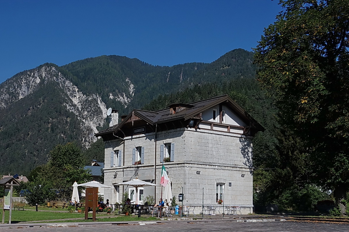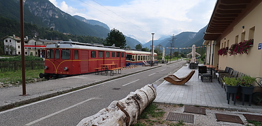 Ankunft am Bahnhof Resiutta. Wie wäre es mit einer Pause? Es gibt auch einen Biergarten.