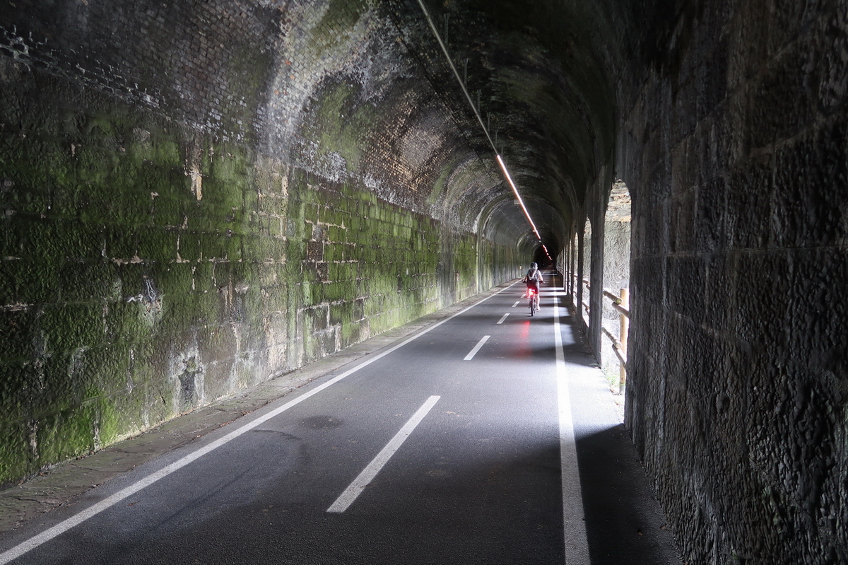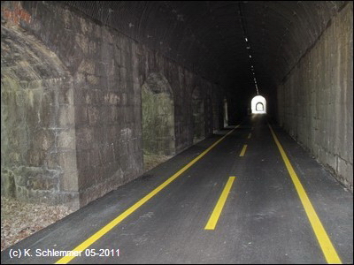 Und schon folgt der nächste Tunnel (beleuchtet, Blick in Gegenrichtung)