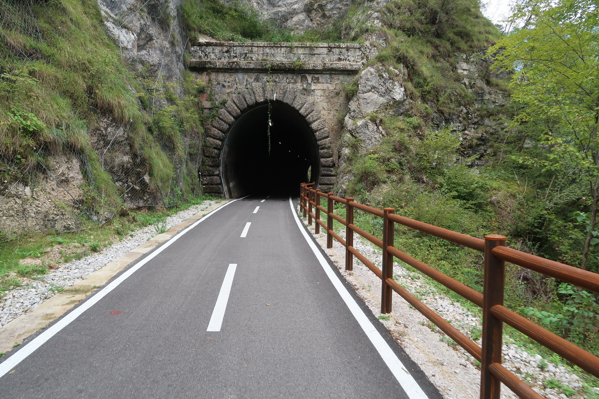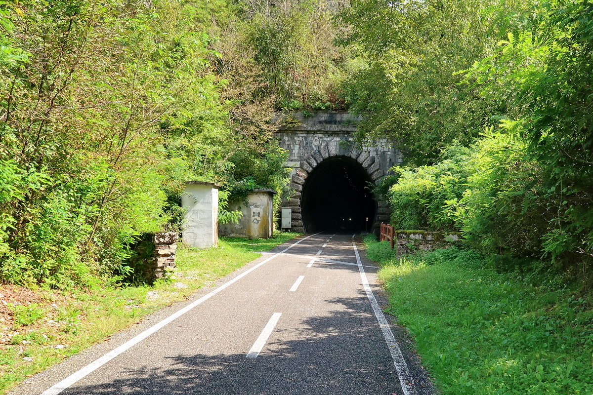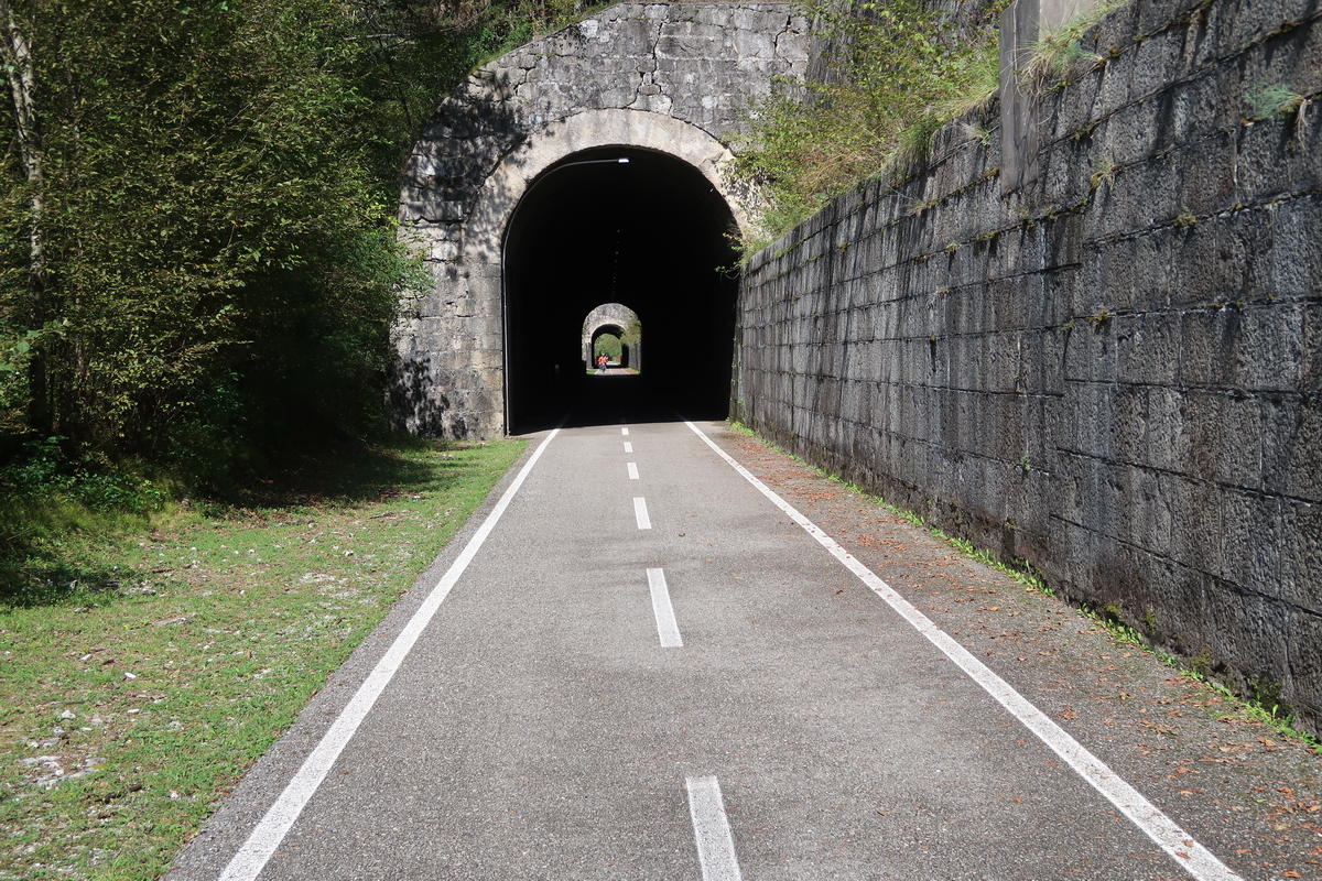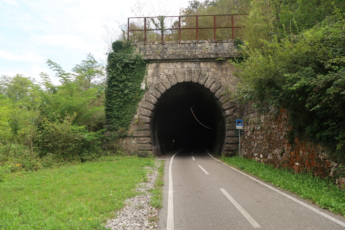 Der beachtliche 659,2 m lange Tunnel von San Rocco wurde ebenfalls restauriert und mit einer Beleuchtung versehen. Es ist kalt im Inneren! Die Umfahrung in diesem Abschnitt ist entfallen.