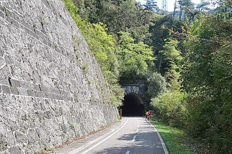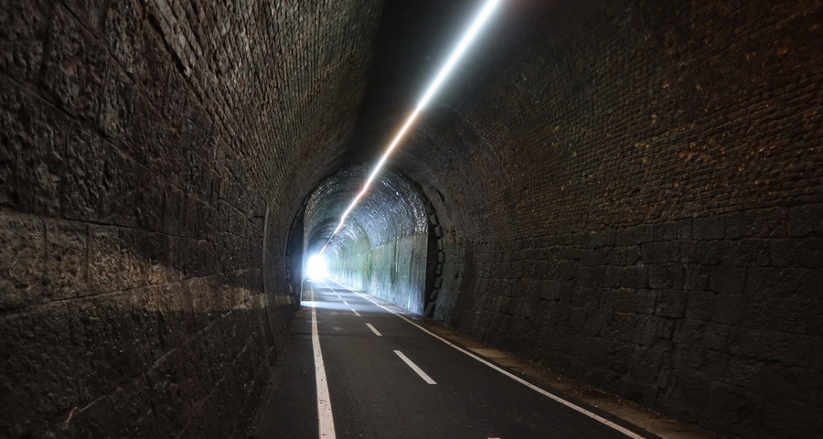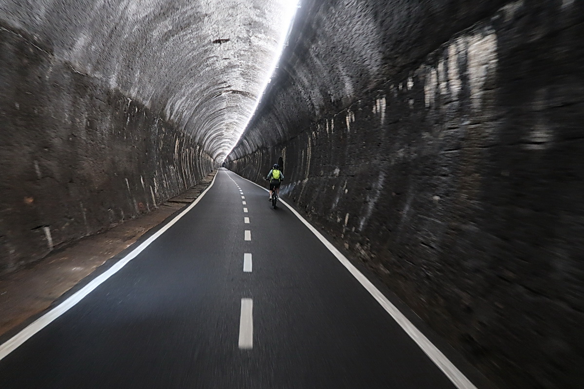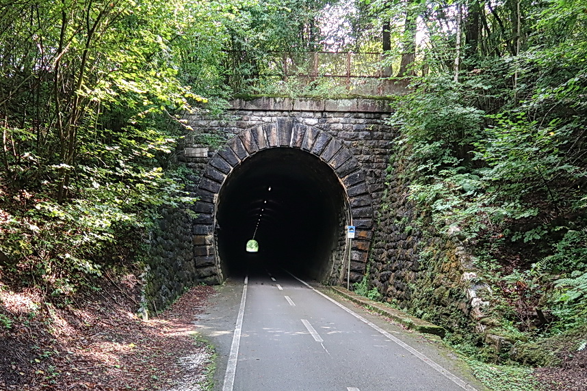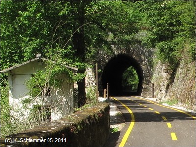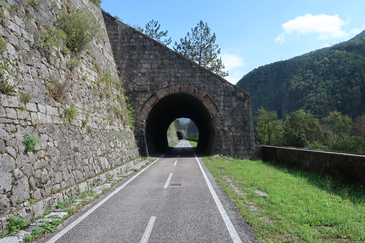 Der beachtliche 659,2 m lange Tunnel von San Rocco wurde ebenfalls restauriert und mit einer Beleuchtung versehen. Es ist kalt im Inneren! Die Umfahrung in diesem Abschnitt ist entfallen.