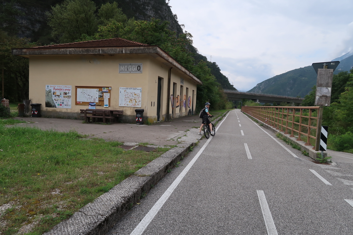 Am alten Bahnhof von Laglesie San Leopoldo beginnt wieder der Radweg auf der Trasse.