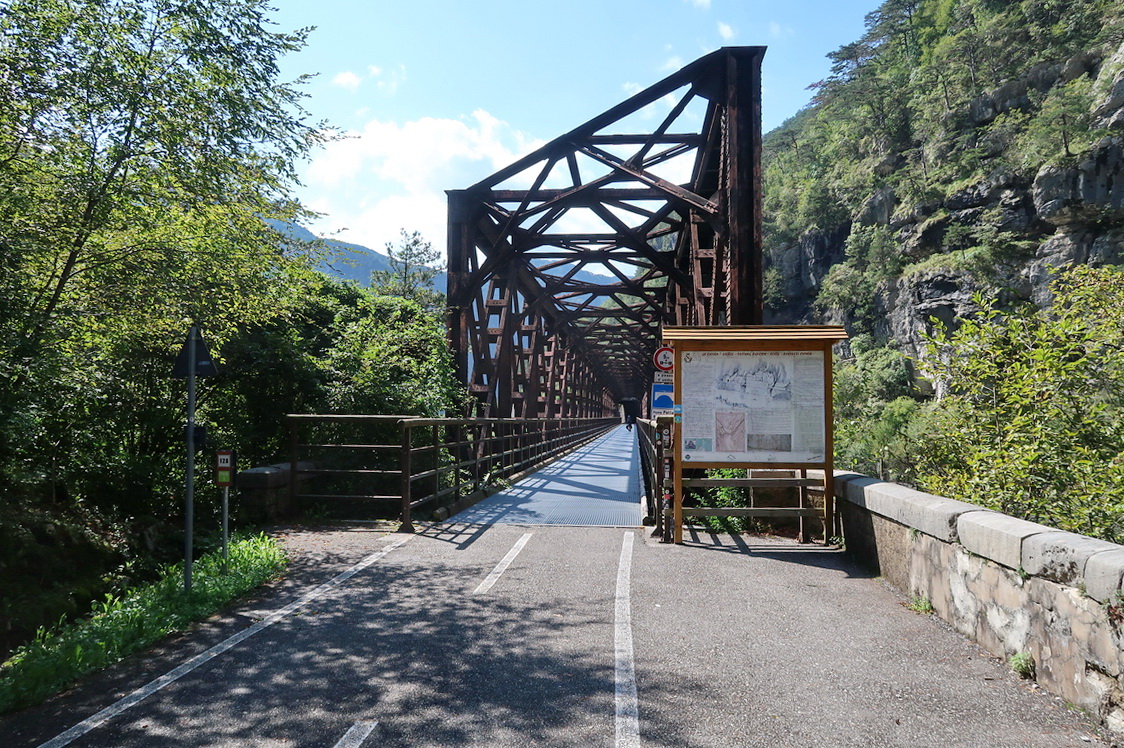 Mit dem Zug erreicht man Carnia. Von hier aus zum Beginn des Radwegs ist es 1 km, man folgt der Beschilderung des Alpe Adria Radwegs in nördlicher Richtung. Die Umgehung Resiutta-Carnia auf der rechten Seite des Flusses ist mit dem Ausbau der Trasse überflüssig geworden. Kerzengerade führt eine breite Brücke über die Fella. Hier liegen noch alte Bahngleise, wahrscheinlich von der Strecke Carnia - Tolmezzo - Villa Santina. (stillgelegt im Jahr 2000) Wer dennoch die Variante nach Resiutta fahren will, findet unten die Beschreibung.