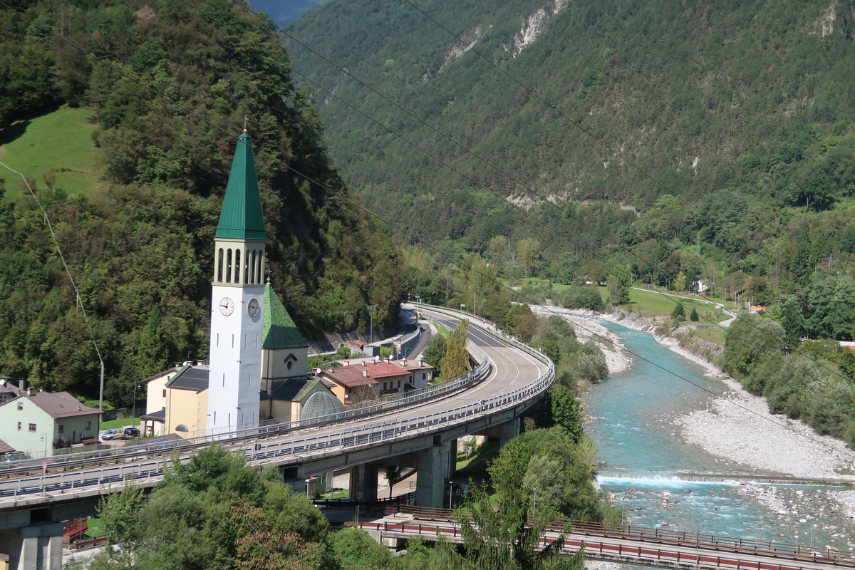 Der Ort wird von der Schnellstraße (SS 13) umschlungen, aber der ehemalige Bahnhof von Dogna befindet sich hoch über dem Tal.