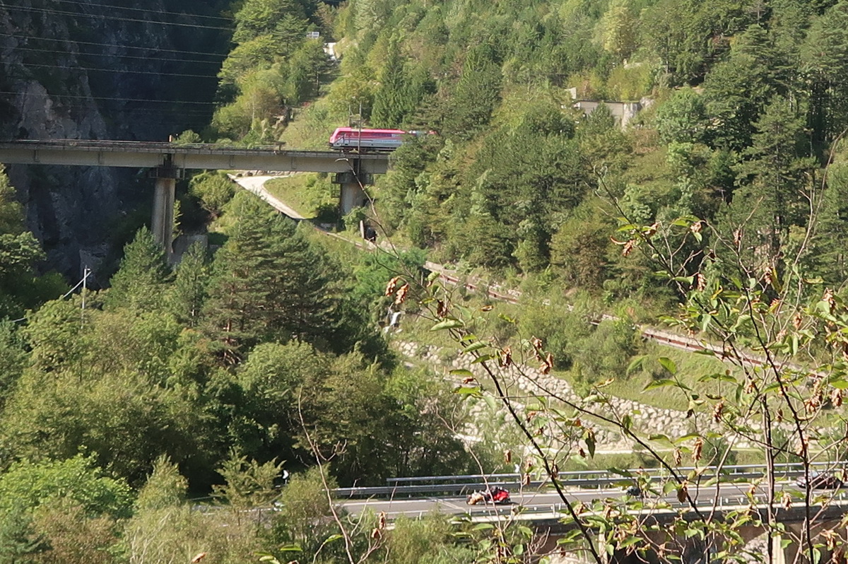 Der Tunnel Ponte di Muro1 (346m) liegt vor uns. Am Hang gegenüber verläuft die neue Pontebbana-Strecke,