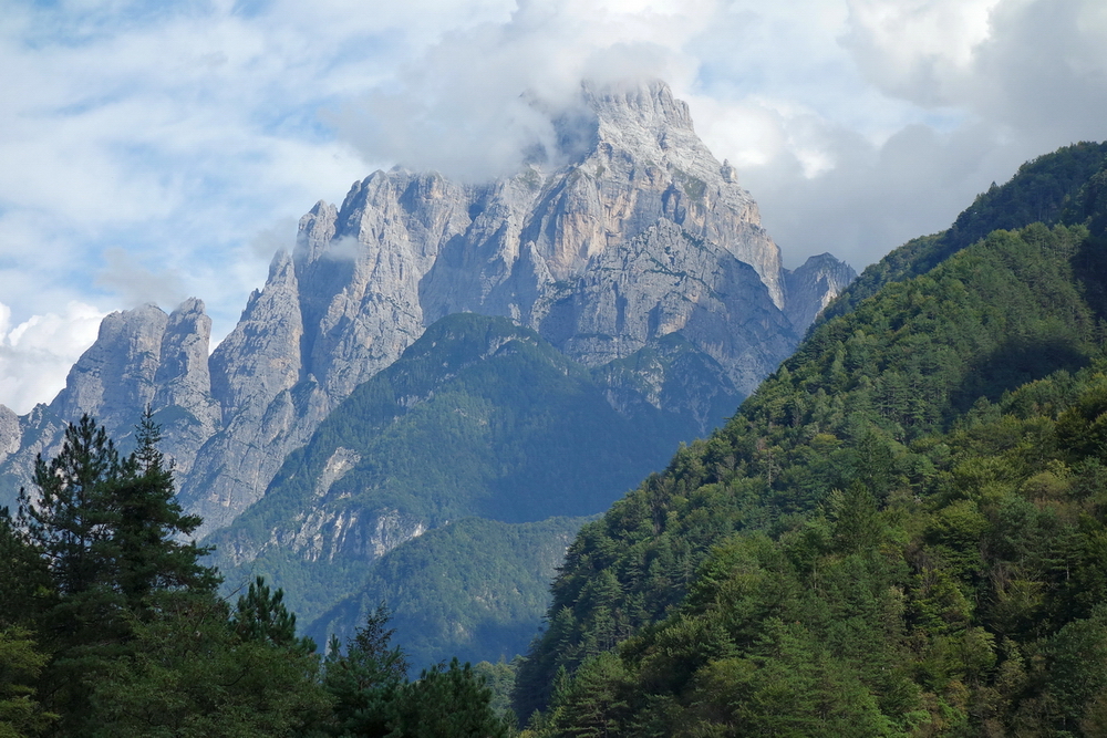 Blick zurück in die Berge. Wir befinden uns kurz vor der Stadt Tarvisio.