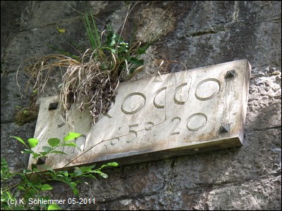 Schon nach kurzer Fahrt leicht bergauf geht es wieder durch einen (beleuchteten) Tunnel. Die alte Kilometrierung am Rande der Trasse ist noch lesbar: Kilometer 51
