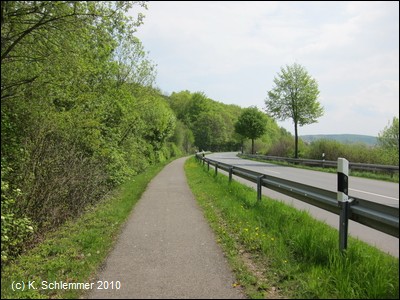 Auf dem Radweg entlang der Straße ist schnell der Scheitelpunkt der Strecke bei Lamspringe erreicht. .