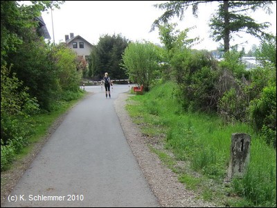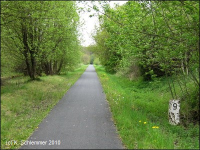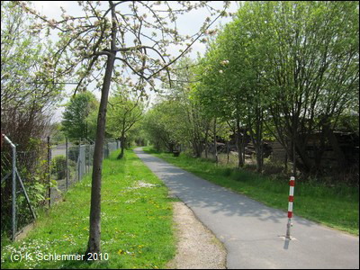 Das Ende der Strecke ist erreicht (Kilometer 1 der Bahntrasse).