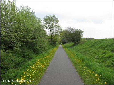 Bei Harbarnsen ist dann nicht mehr zu übersehen, dass der Radweg auf dem Bahndamm verläuft. Durch einen Einsschnitt geht es weiter Richtung Netze.