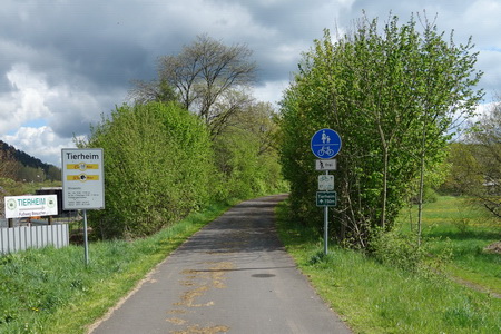 Geradeaus Richtung Kläranlage und Tierheim erreicht man den Bahntrassenradweg und die Brücke über die Fulda.