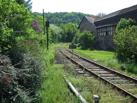 An dem alten Gebäude zweigte ein Gleis zum Kalkwerk ab. Hier wurden die Steine gebrochen und die Waggons befüllt. Eine Feldbahn führte hinauf zum Steinbruch. Die Brennöfen, etwa einen halben Kilometer entfernt, sind noch vorhanden. Gegenüber des Eingangstores zum Gutshof zweigt der R1 ab in nördlicher Richtung nach Ludwigsau-Friedlos.