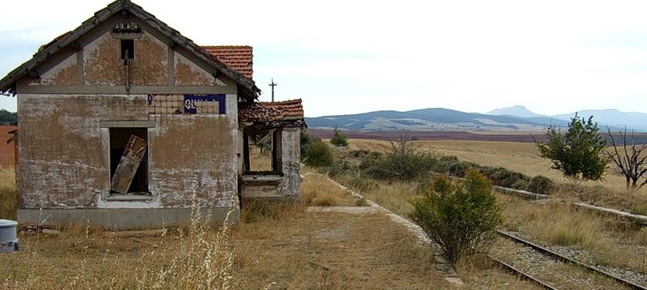 Auf dem Weg von Ciria nach Calatayud: Bahnhof Malanquilla, Kilometer 36,3, Foto 2008 (K.S.)