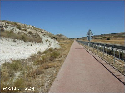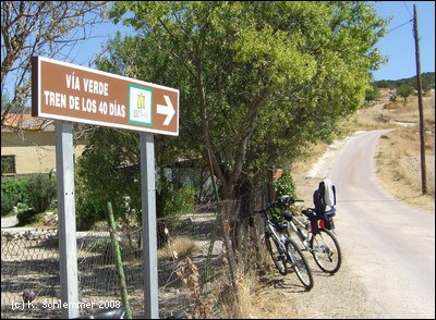 Die Zufahrt zum Startpunkt der Vía Verde Tren de Los 40 Dias von der Vía Verde del Tajuña ist eine steile Rampe von 700 m Länge. Die einzige kurze Umfahrung beginnt etwa bei Kilometer 2.