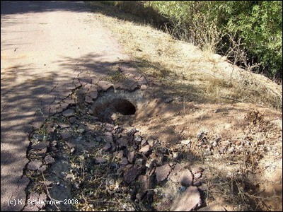 Dann aber doch noch ein Rastplatz. In der heißen Luft entstehen immer wieder kleine "Tornados", die den Staub aufwirbeln. Vor der Kuppe wird die M-221 unterquert.