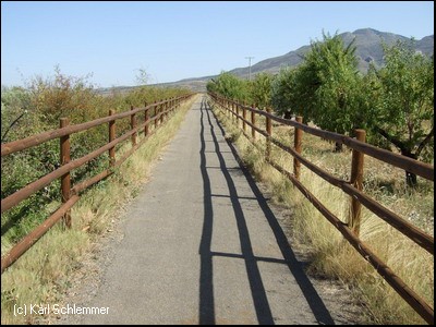 Zwei Tunnel und eine Brücke gehören zur Infrastruktur des Radwegs, der in die einsamen Berge der Region bis auf 730 m Höhe führt. Von dort aus erreicht man zu Fuß die ehemaligen Kohleminen von Valdenurillo wo Fußabfrücke von Dinosauriern im Gestein entdeckt wurden.