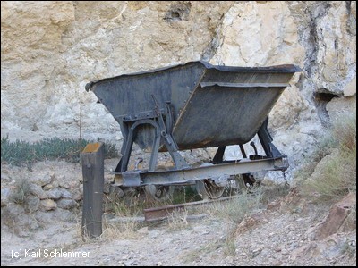 Vorbei an den Resten alter Minenanlagen erreicht man den Parkplatz bei Kilometer 5 am Ende des kurzen Radwegs.