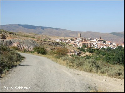 Schon kommt Préjano mit seinem auffälligen Turm (Torreón del Castillo) in Sichtweite.