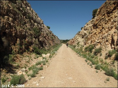 Durch den Einschnitt, dann an dem Wegweiser nach Alcaraz folgen.