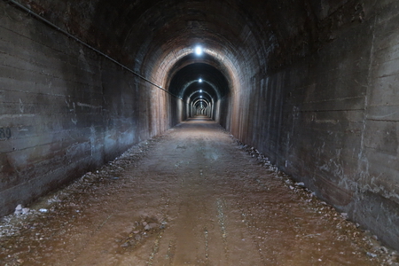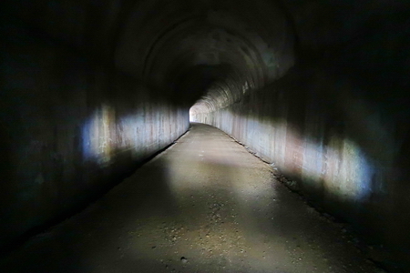 Ein kurzer Tunnel mit einer Kurve ohne Beleuchtung