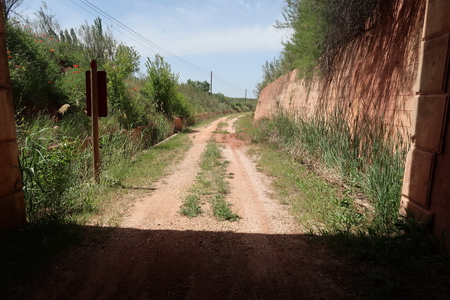 Die Trasse verschwindet in einem Einschnitt, eine kleine Brücke kommt in Sicht. Ein Weg biegt nach links ab, die letzte Chance die N-322 zu erreichen.