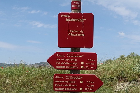 Der erste Teil der Vía Verde führt von der Privinzhauptstadt Albacete zum Kloster Santuario Ntra. Sra. de Cortes und neuerdings noch 2,2 km weiter bis an den Ortseingang von Alcaraz (1350 Einwohner). Ab hier ist die Bahntrasse bis zum alten Bahnhof Reolid nicht ausgebaut (ca. 10m km). Es bleibt für den Radler nur die Fahrt auf der Nationalstraße N-322. (Für hartgesottene Bahntrassenfans ist noch ein 4 km langes Teilstücke auf dem Bahndamm fahrbar).