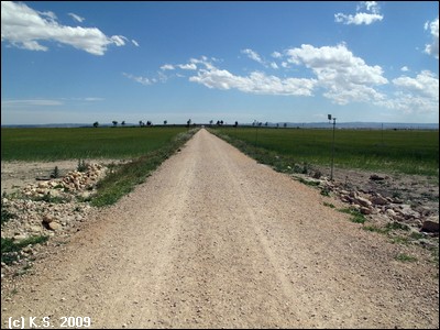 Kerzengerade und unmerklich bergauf durch die Felder!