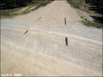 Auf der anderen Straßenseite ein kurzer Schlenker, dann ist man wieder auf der kerzengeraden Trasse.
