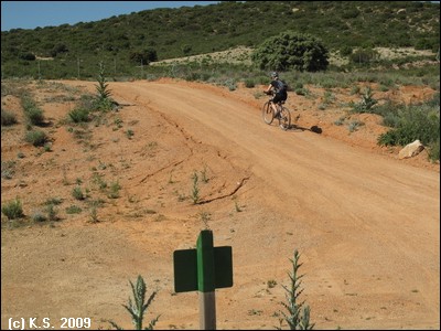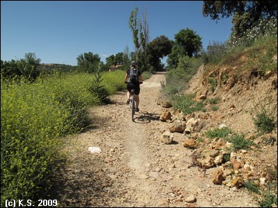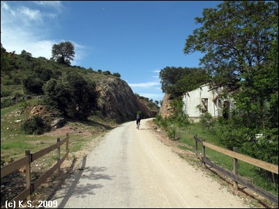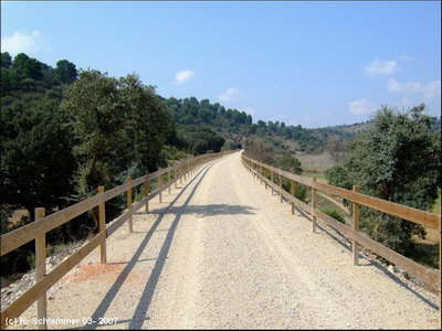 Es geht nun bergab! Eine Umfahrung führt uns unter der N-322 durch und wieder auf die Trasse (km 67). Hier folgt ein Stück schlechte Wegstrecke.