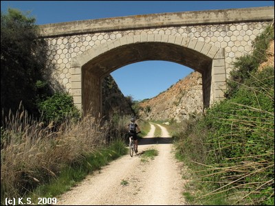 Die alte Trasse führt weiter über Brücken und durch Tunnel Richtung Bienservida.