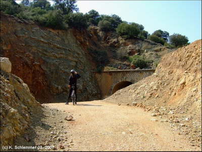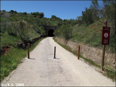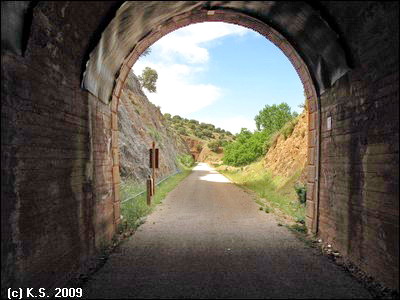 Der Tunnel von Reolid, bei Kilometer 87 des Radwegs, hat eine beachtliche Länge von 520 m und ist beleuchtet.