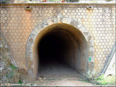 In der zerklüfteten Landschaft mussten etliche Tunnel gebaut werden, um die konstante Steigung der Bahnlinie zu ermöglichen