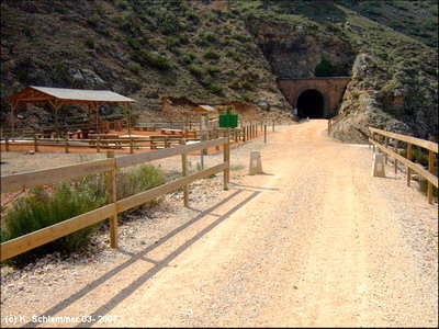 Der dritte Teil des Radwegs wird offiziell als Vía Verde de la Sierra de Alcaraz II bezeichnet. Im Frühsommer 2009 war der Abschnitt komplett ausgebaut, die Fahrbahn wurde zur Hälfte asphaltiert - ein guter Kompromiss. Nur ein kurzer Abschnitt vor dem Steinbruch lässt noch zu wünschen übrig (Schotter/Kies). Die Beleuchtung der Tunnel hatte so ihre Tücken, wo sie funktionierte, ging manchmal mitten im Tunnel das Licht aus und ließ sich auch durch die Schalter nicht wieder einschalten.