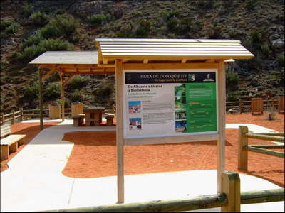 Noch vor dem nächsten Tunnel erreicht man den schönen neuen Rastplatz von El Jardin mit Infotafeln zur Ruta de Don Quijote. Hier beginnt offiziell die Vía Verde Alcaraz II
