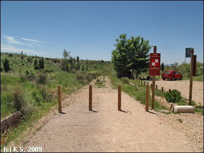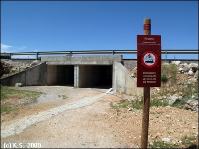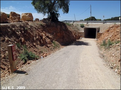 Ein beschilderter Weg (Ruta de Don Quijote) führt zum Rastplatz vor dem Tunnel.