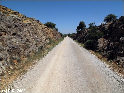 Entlang der N-322 auf einem Feldweg mit Splittbelag