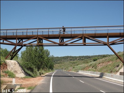 DEr Ort Bienservida ist ca. 10 km entfernt. Eine Brücke überquert die Trasse.. Ein eiserner Steg (Pasarela) führt gefahrlos über die Nationalstraße.
