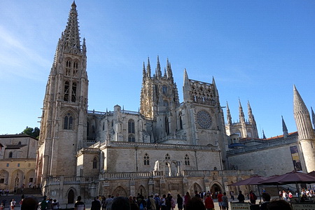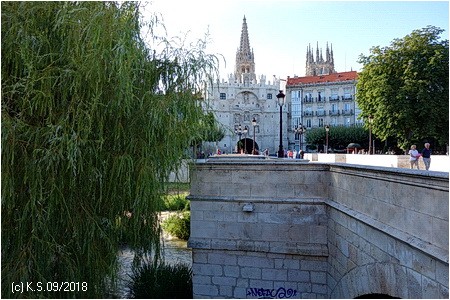Wir beginnen die Fahrt in Burgos am Río Arlanzon, den wir bereits von seinem Ursprung in der Sierra de la Demanda her kennen. Die Provinzhauptstadt mit ihrer historischen Altstadt ist ein attraktiver Ausgangspunkt. Über die Brücke und durch das Portal Arco de Santa María erreicht man die mächtige gothische Kathedrale.