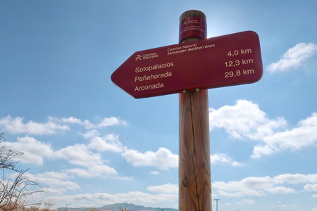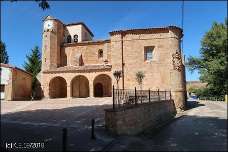 Der Radweg überquert den Rio de La Molina. Auf dem Hügel erkennt man die Ruinen einer ehemaligen Einsiedelei (Ermita de Nuestra Señora de los Ángeles). Dann erreicht man Quintanarruz.