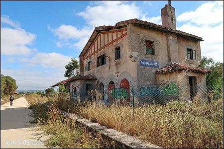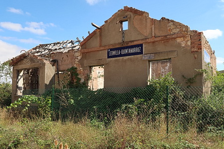 Die Kilometerierung zählt nun wieder abwärts, ab Km 21,7 in Quintanarruz - etwas verwirrend? Der nächste Bahnhof, Lermilla-Quintanarruz, ist auch nur noch eine Ruine.