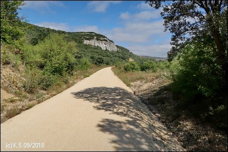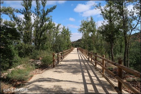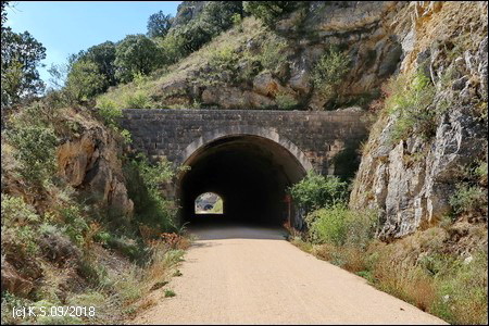 Etwa bei Kilometer 13 des Radwegs beginnt ein felsiger Durchbruch gefolgt von zwei Tunneln: Hier hat sich der Bach "Arroyo de la Hoz" tief in das Gestein eingegraben (Desfiladero de la Hoz).