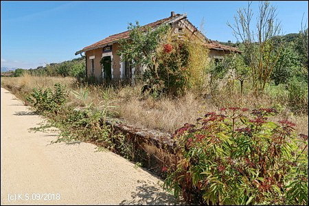 Nach dem Bahnhof geht der Radweg in einen schmalen Pfad über. Deshalb führt eine kurze Umfahrung gleich hinter dem Gebäude rechts ab und durch den Ort. Dort kann man die Nationalstraße N-623 überqueren. Am nördlichen Ortsende trifft man wieder auf die ausgebaute Strecke.